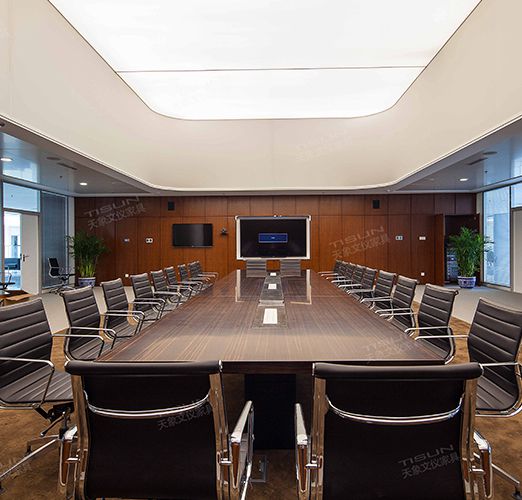 大百匯集團位于深圳羅湖,是一家多元化企業集團。因為公司人員比較多,所以需要一個大型會議室。為了迎合客戶的需求和企業的整體氣質和文化,我們向客戶推薦了簡約穩重版的會...